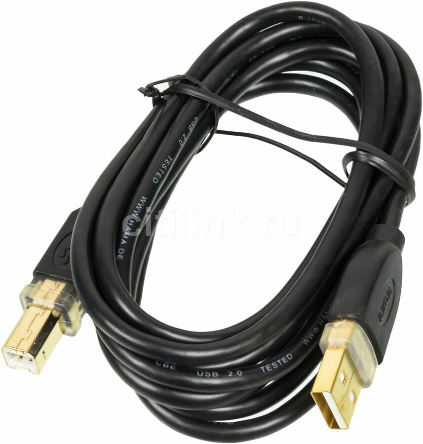 Кабель Hama USB2.0 AM/BM, 1.8м, черный, позолоченные контакты интересное: