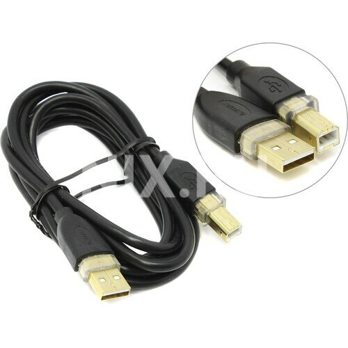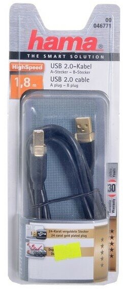 Кабель USB2.0 HAMA H-46771, USB A(m) (прямой) - USB B(m) (прямой), GOLD , 1.8м, блистер, черный [00046771]