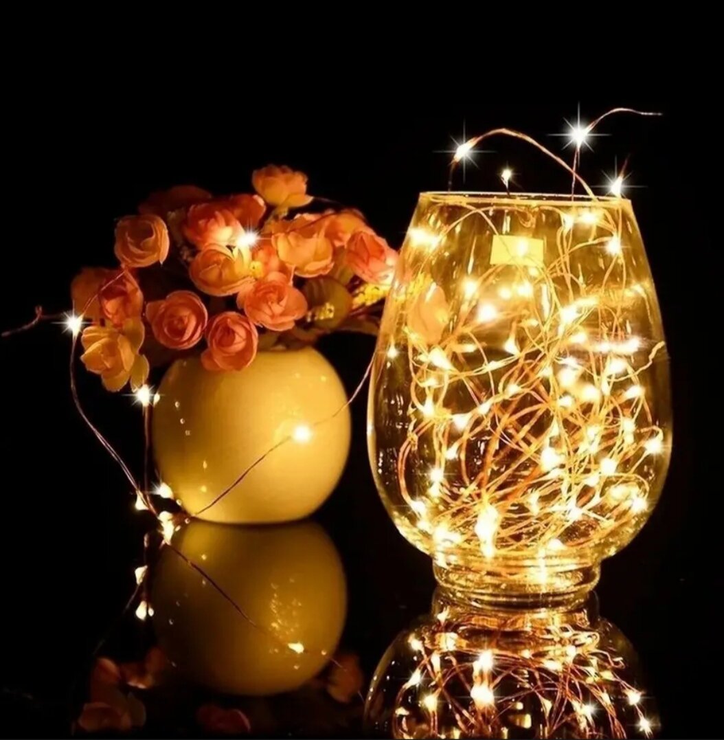 | Плюсы: | Компактная, переносная гирлянда для того, чтобы что то маленькое и красивое светилось вдали от розетки. Красиво смотрится в хрустальной вазе. Брала тепло белую и сиреневую. |