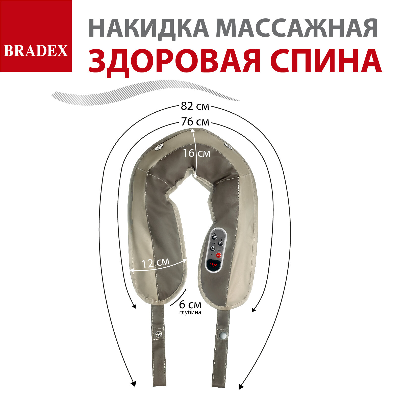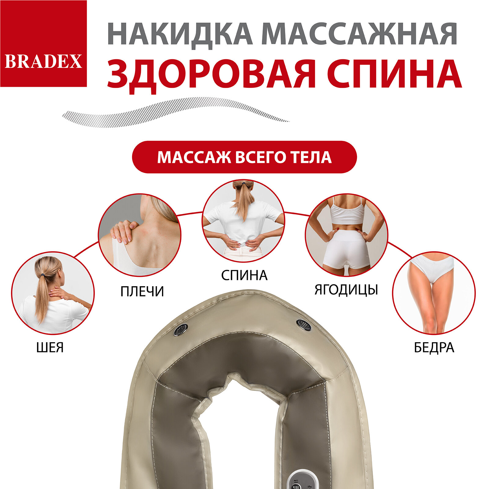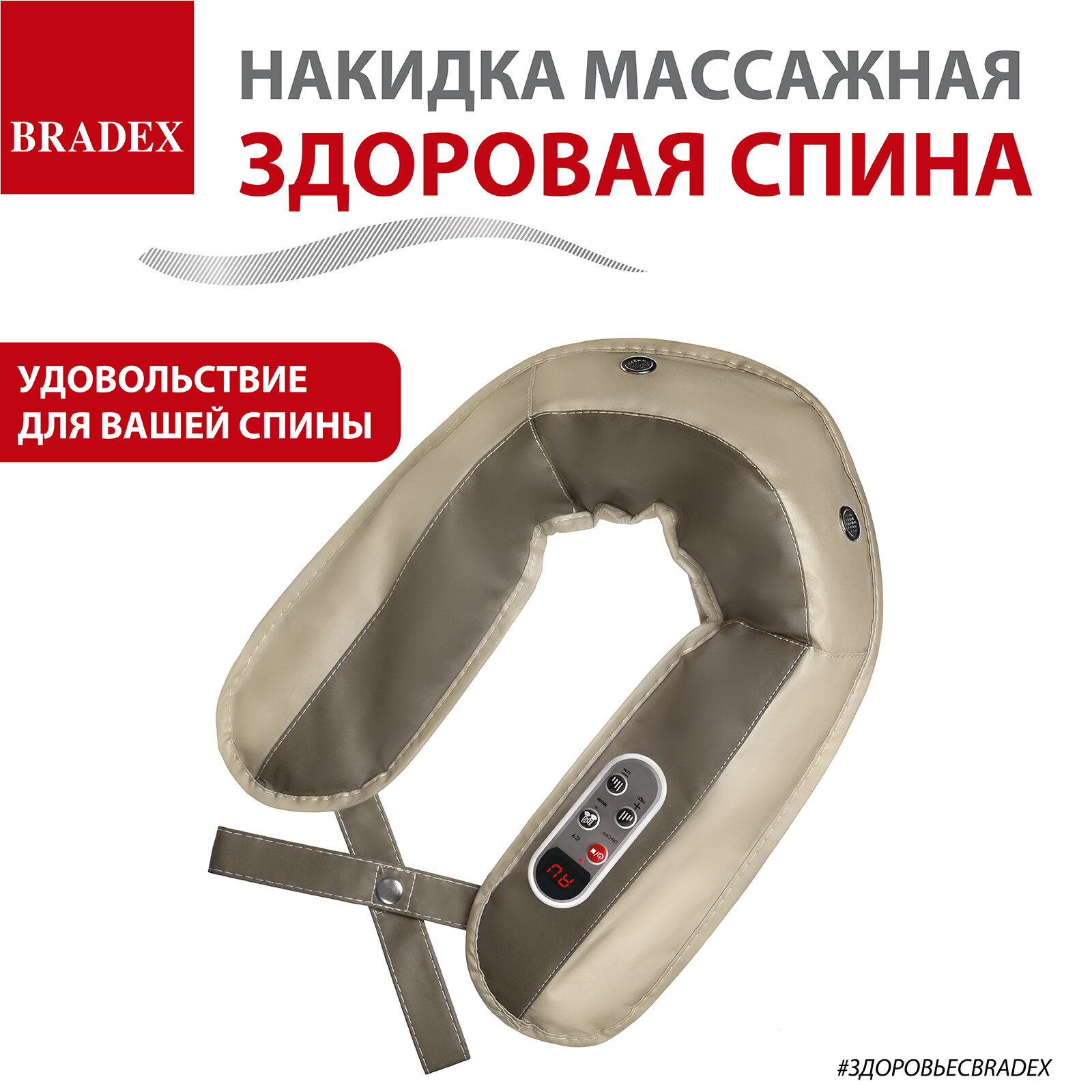 Накидка массажная BRADEX KZ 0096 здоровая спина 15 ручных режимов массажа, бежевый
