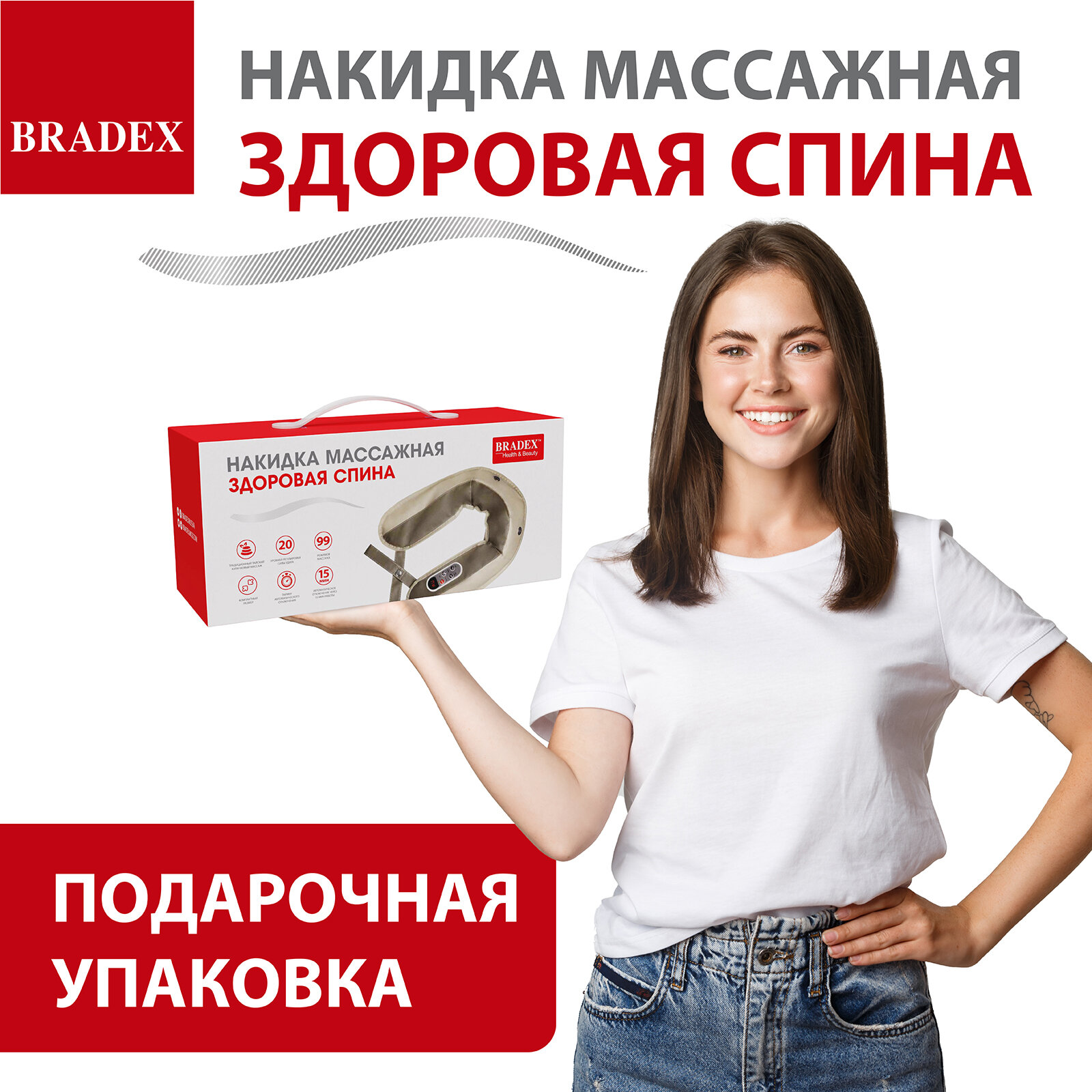 Массажер для шеи и плеч, поясницы BRADEX массажная накидка "Здоровая спина", электрический вибромассажер для тела, шейный электромассажер