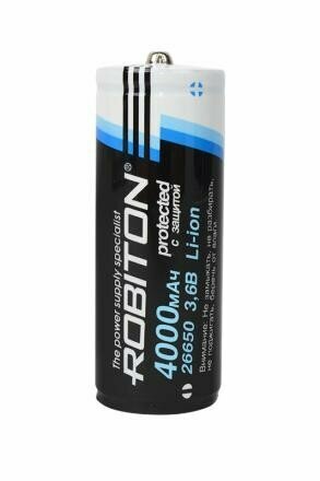 Аккумулятор Li-Ion 4000 мА·ч 3.6 В ROBITON 26650-4000 с защитой, в упаковке: 1 шт.
