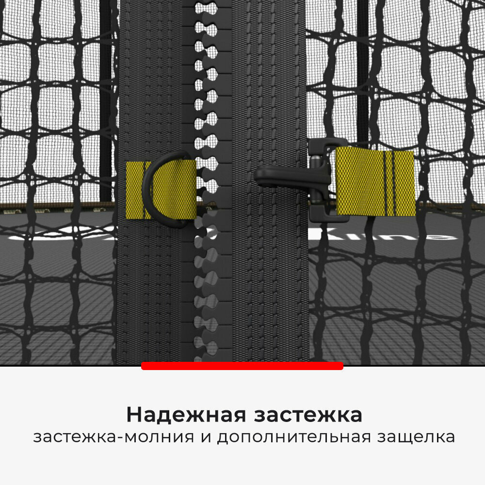 Брал с нижней сеткой, чтобы один мелкий не догадался залезть под батут, пока второй прыгает |