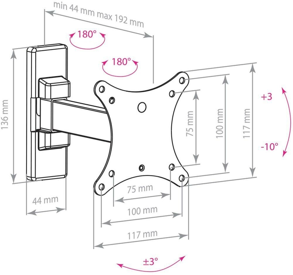 Кронштейн Arm media MARS-1, для ТВ, наклонно-поворотный, 10-32", до 20 кг, 44-192 мм, черный