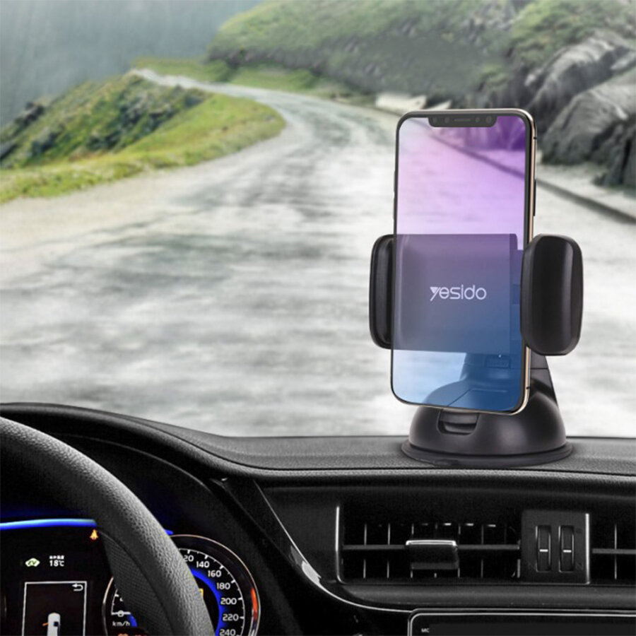 Купить Держатель для телефона автомобильный зажимной с креплением на присоске. Подставка под смартфон на приборную панель и лобовое стекло в салон авто, черно-желтый