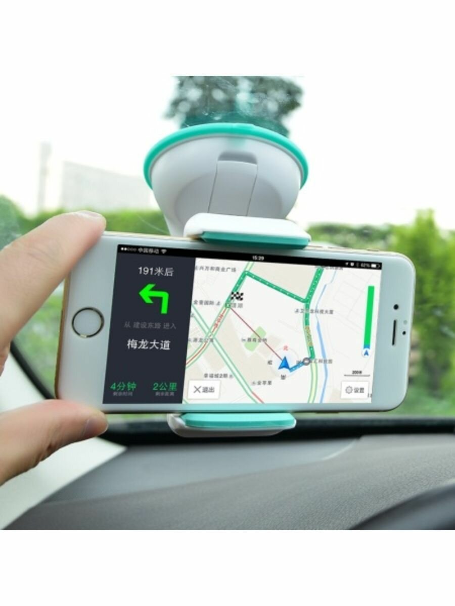 | Плюсы: | приклеивается на панель, а не только на стекло, крепко держит телефон, при этом телефон в него ставится одной рукой. можно развернуть основание на 180. |