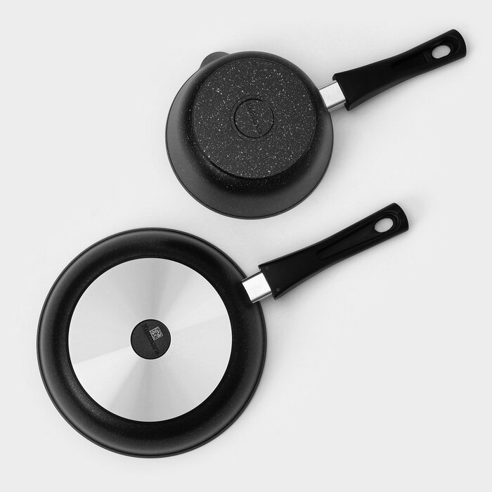 Набор кухонной посуды «Мраморная №3» 6 предметов стеклянная крышка съёмная ручка антипригарное покрытие цвет тёмный мрамор