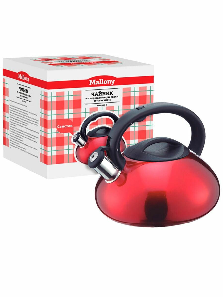 Чайник со свистком Mallony MAL-103-R 3 л, красный, нержавеющая сталь