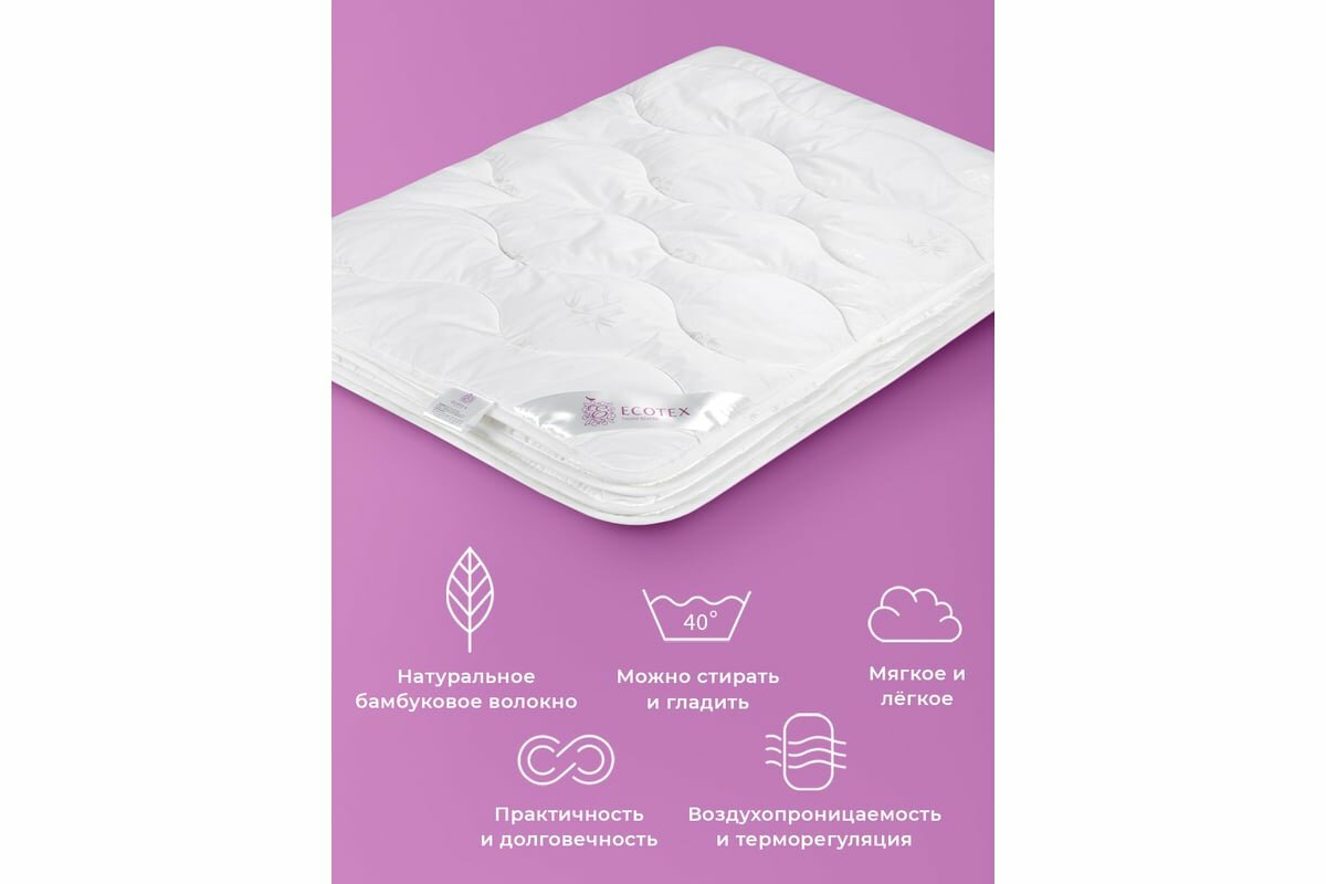 Одеяло Ecotex Бамбук Премиум облегченное (172х205 см), бамбуковое волокно, летнее