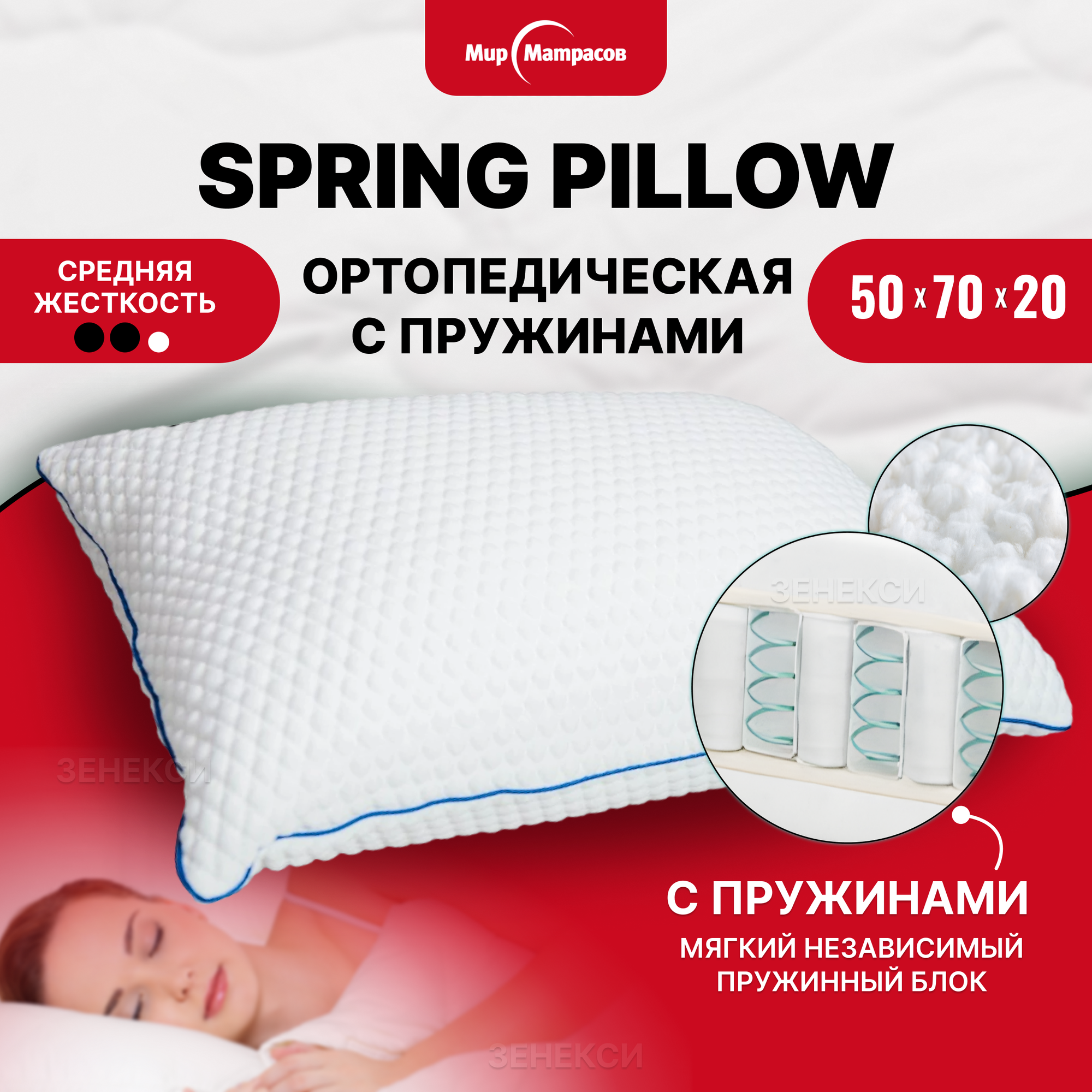 Подушка Мир Матрасов Spring Pillow, 50 х 70 см, высота 16 см интересное: