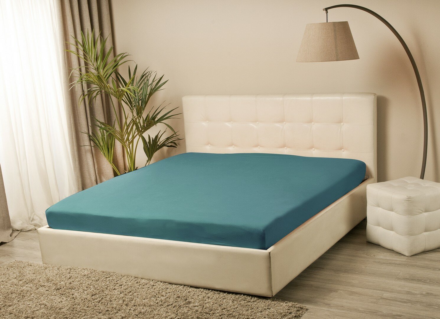 Простыня на резинке KUPU-KUPU VIOLETT трикотажная, голубая ель 160x200х25