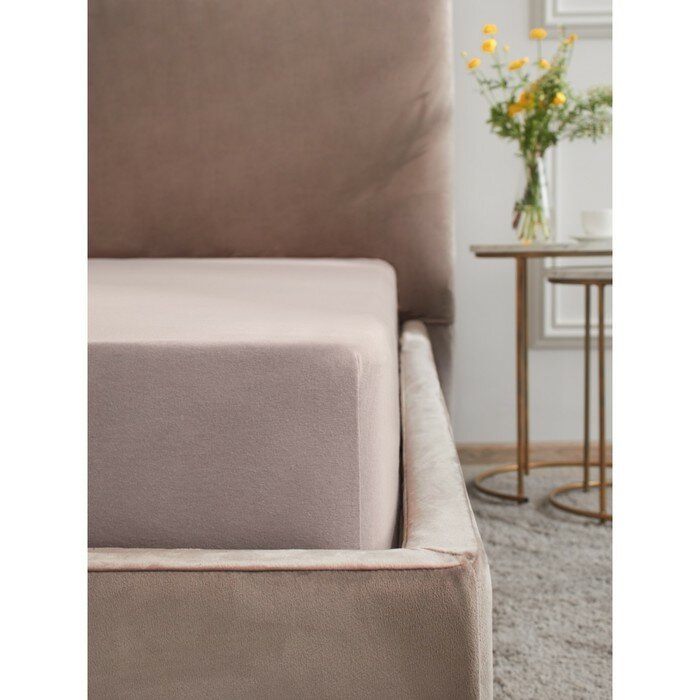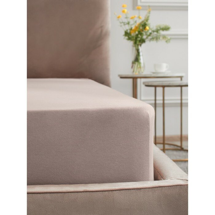 Простыня на резинке трикотажная Beige, без рисунка, бежевый размер 180 х 200