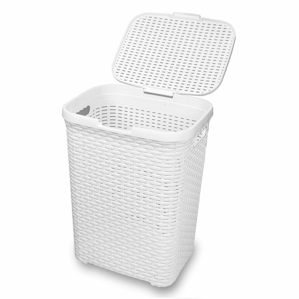 Корзина для белья Ротанг VIOLET белая, 40л, с кры