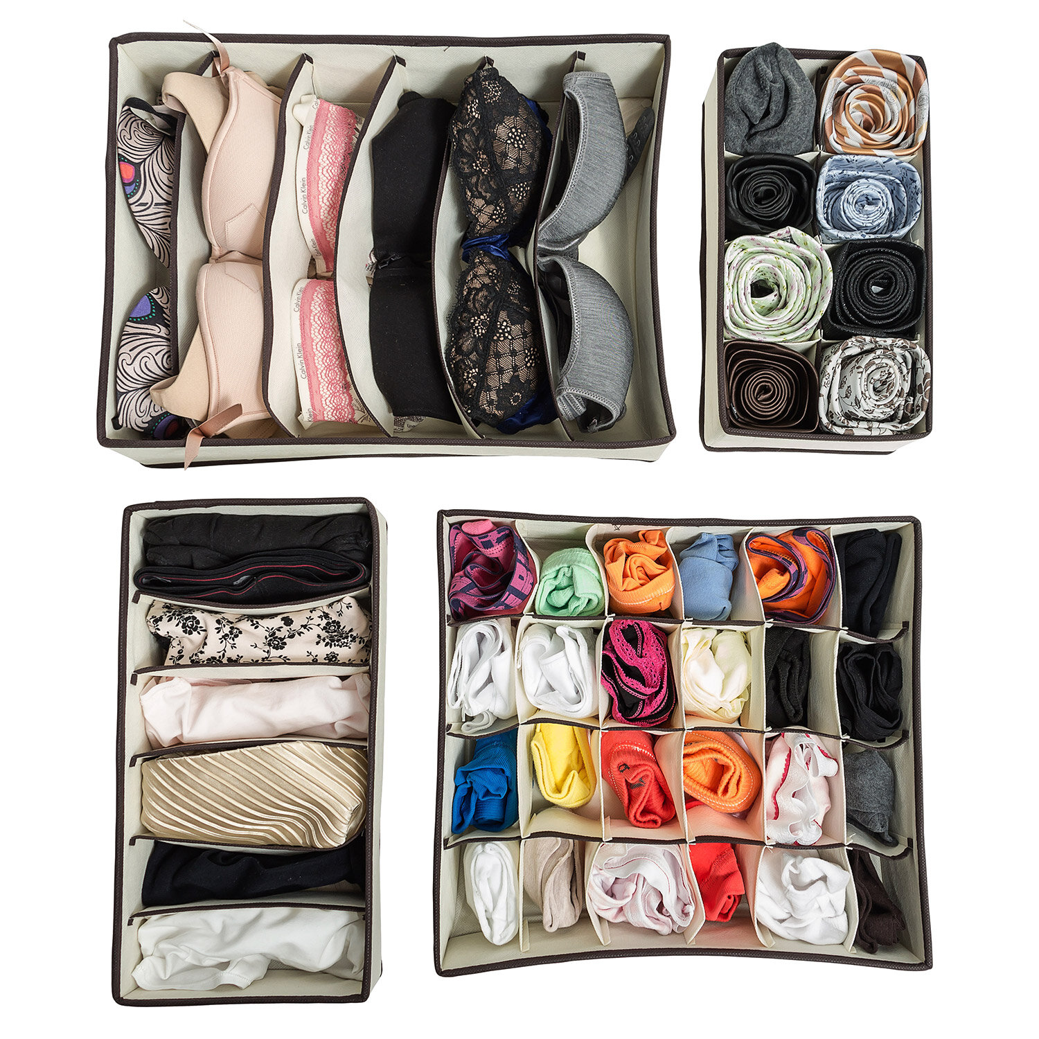 Бежовый Органайзер для хранения вещей, мелочей / Набор контейнеров для женского и мужского нижнего белья 4 шт.