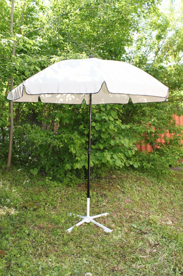 | Отзыв: | Ткань очень маркая. Цвет топленое молоко с чуточкой коричневого. Думаю, если за лето промокнет и не высохнет должным образом, пойдет плесень черными точками и это будет очень заметно, в отличие, скажем, от аналога в синем цвете. Чехол зонта-слюда, не слишком прочная. Для пляжного зонта тяжеловат, для сада/огорода-само то. |