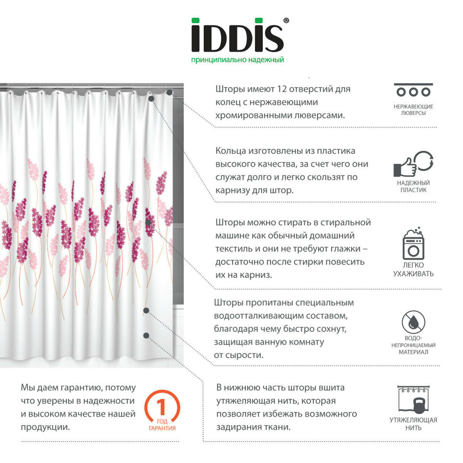 Штора для ванной комнаты IDDIS Lavender Happiness 200*200 см lavender happiness (SCID120P)