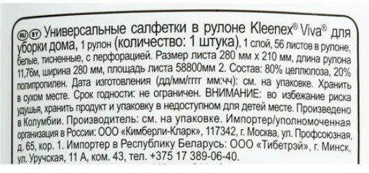 Салфетки Kleenex Viva универсальные в рулоне 56 салфеток, 1 шт.