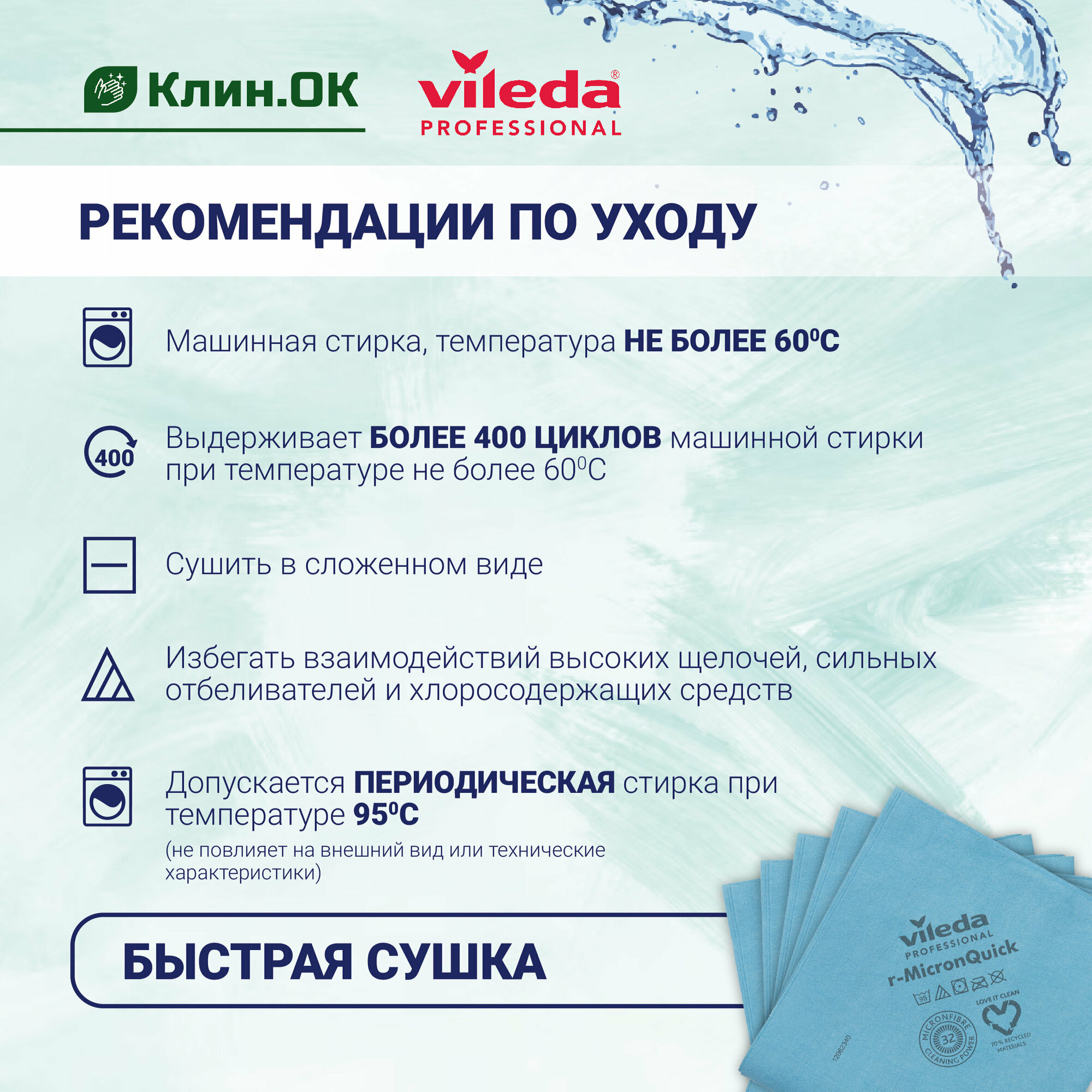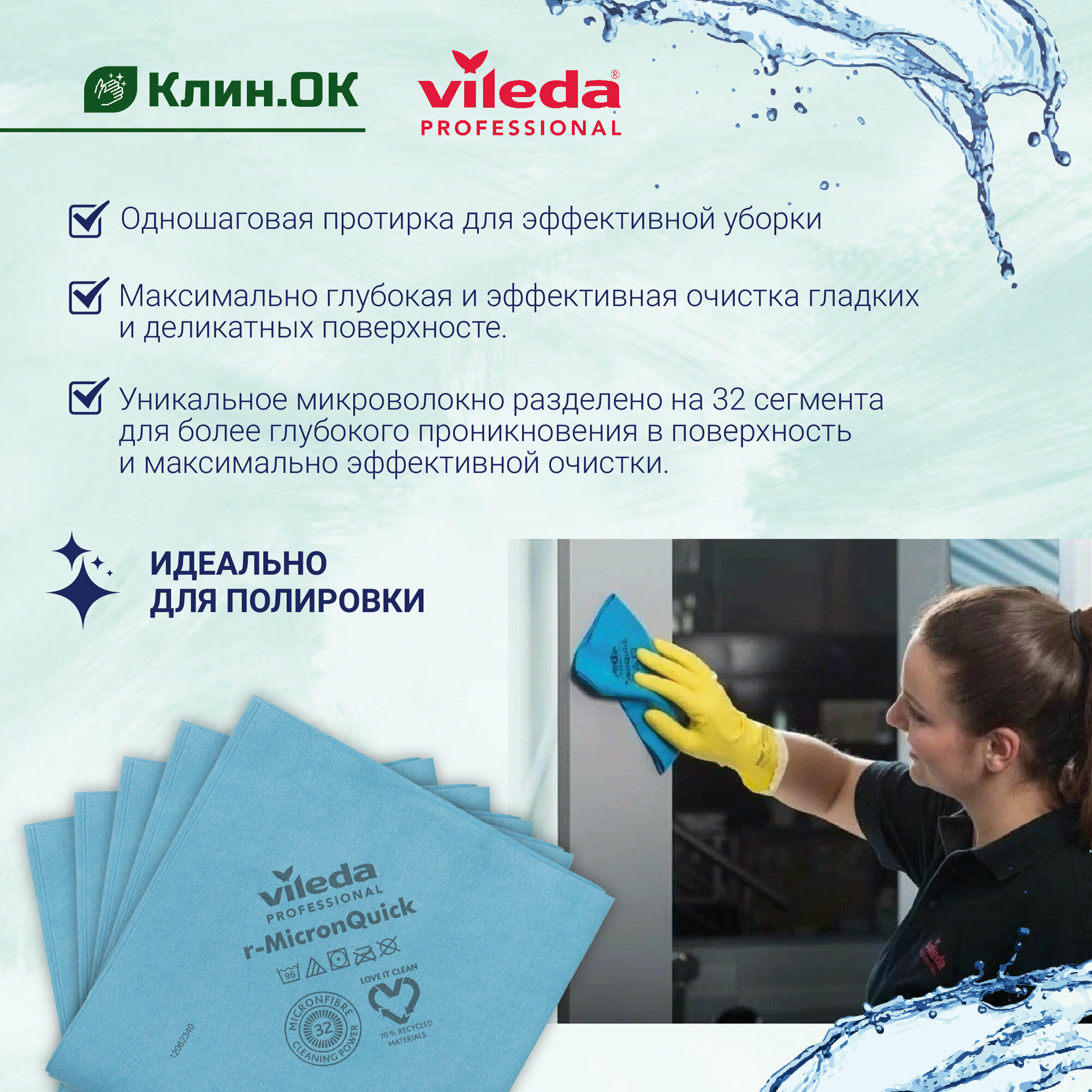 СохранитьСалфетка Vileda Professional МикронКвик, синий, 5 шт., 1 уп. интересное: