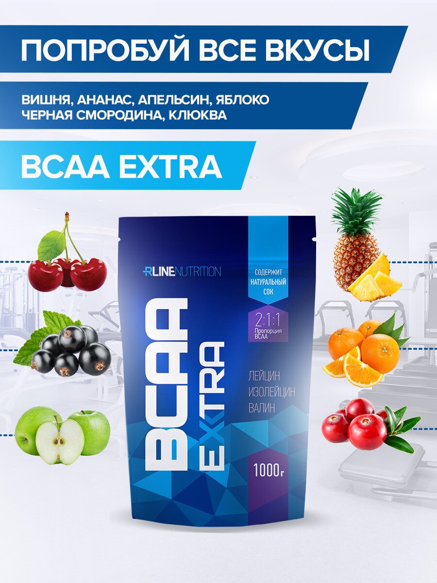 RLINE BCAA Extra (1000 г) большой пакет (Клюква)