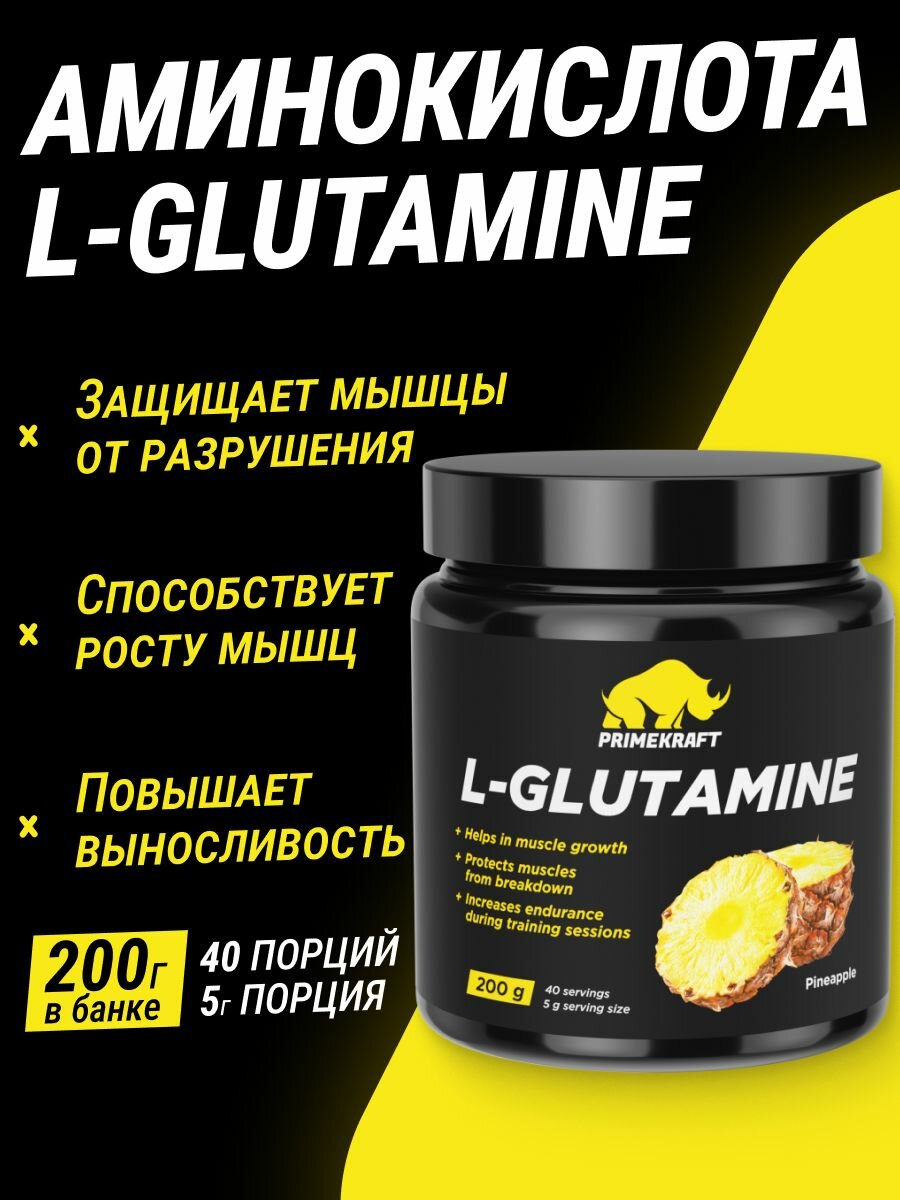 Аминокислота PRIME KRAFT L-GLUTAMINE (ананас), банка, 200 гр.