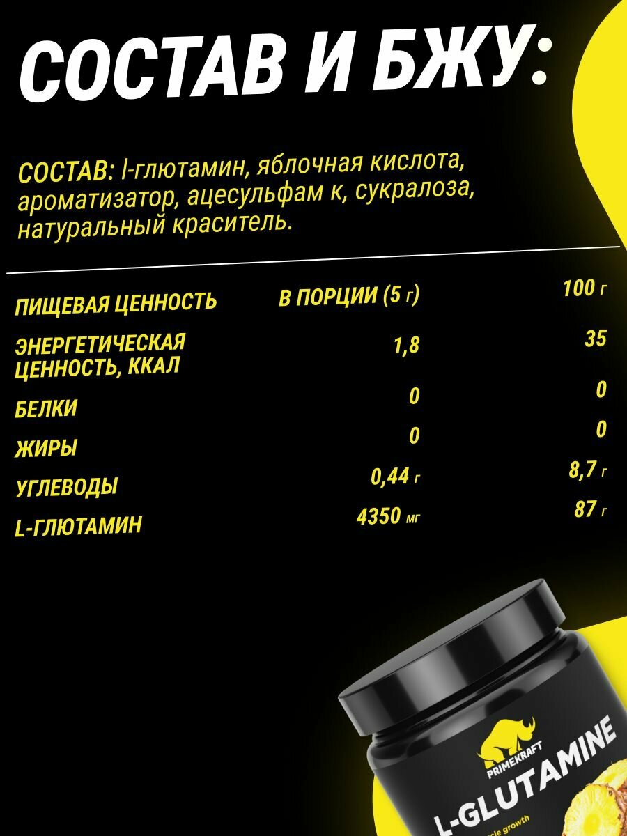 Аминокислоты PRIMEKRAFT Глютамин L-Glutamine Ананас, 200 г / 40 порций