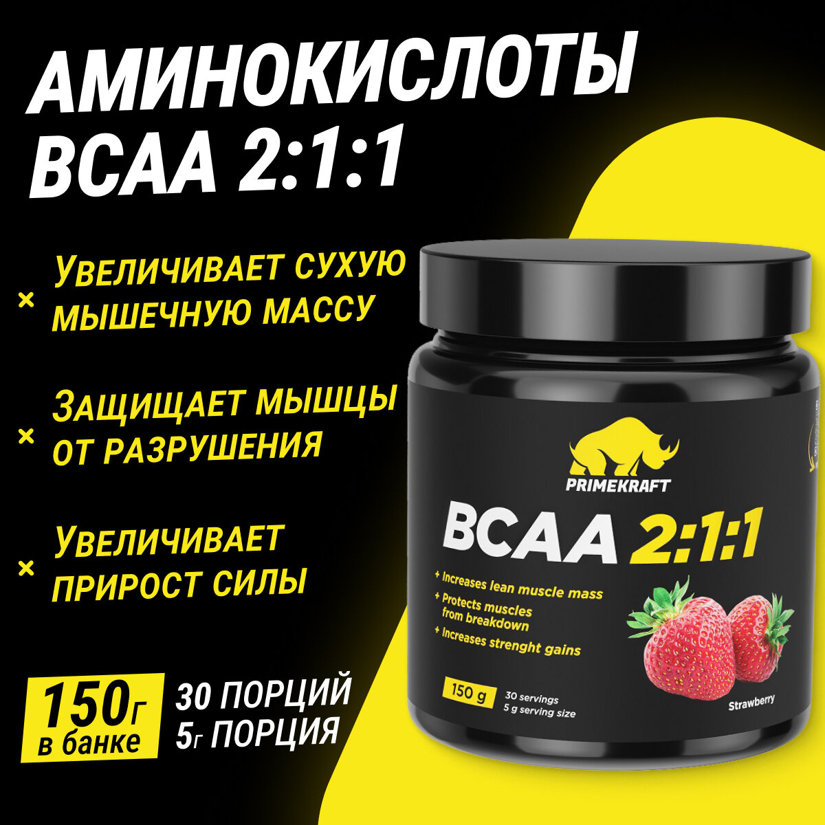 Prime Kraft BCAA - Аминокислотный комплекс 2:1:1 с клубничным вкусом, 150 г