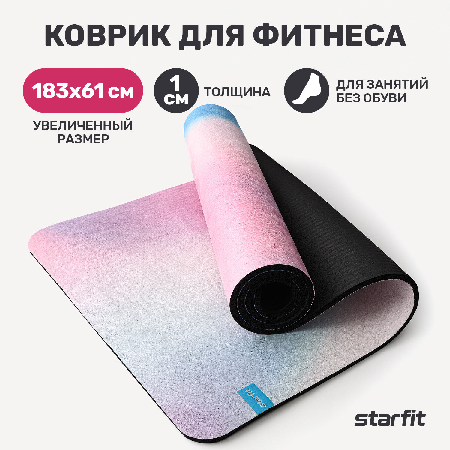 Коврик для йоги и фитнеса Starfit Fm-301, Nbr, 183x61x1,0 см, с рисунком