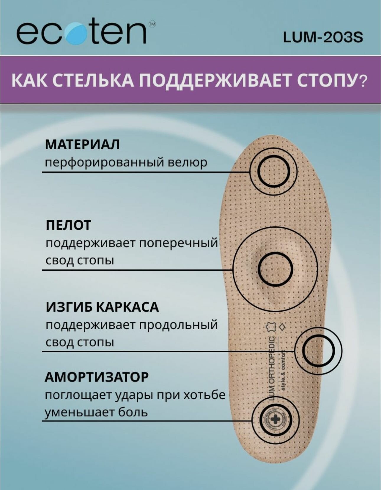 Стельки ортопедические при комбинированном плоскостопии Экотен LUM203S (36, 4680281023736)