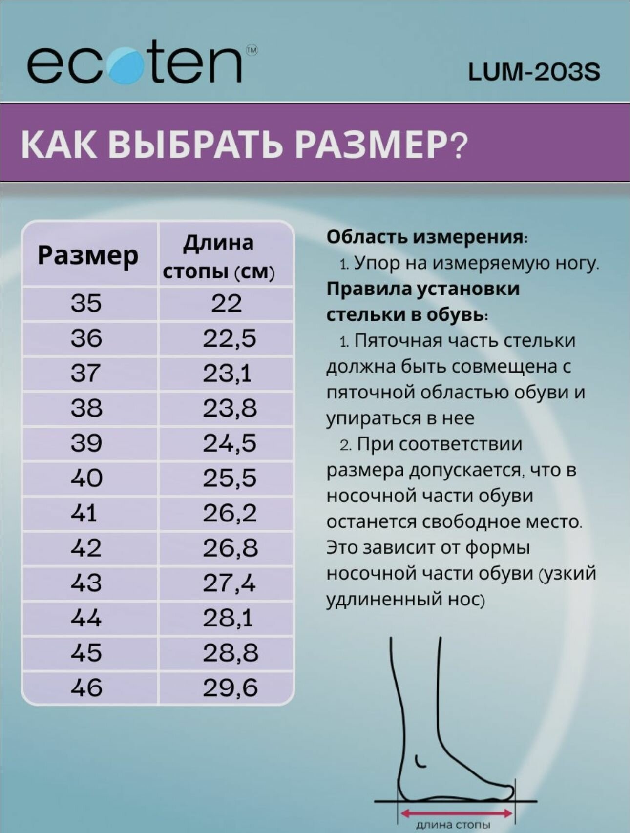 Ниже Вы можете прочитать отзывы на Стельки ортопедические при плоскостопии Экотен LUM-203S, размер 37, ознакомится с подробными характеристиками, посмотреть интересные обзоры и фотографии на Стельки ортопедические при плоскостопии Экотен LUM-203S, размер 37.