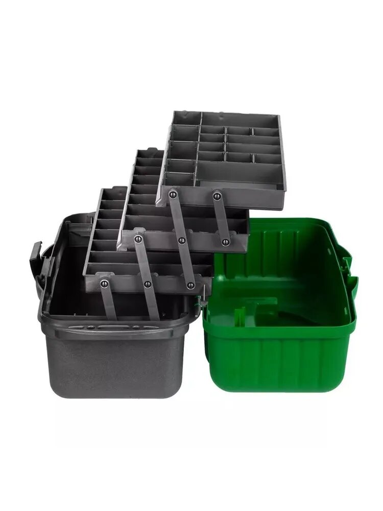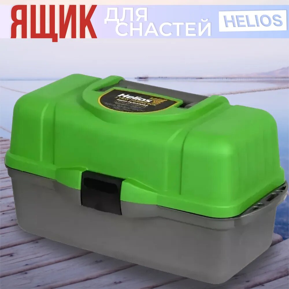 Ящик для рыбалки HELIOS трехполочный зеленый/серый 43 см 22 см
