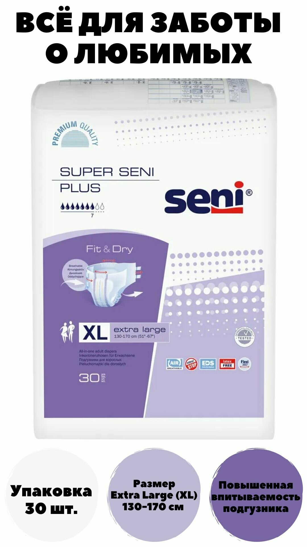 Seni Подгузники для взрослых Super Plus, 130-170 см., XL (30 шт.)