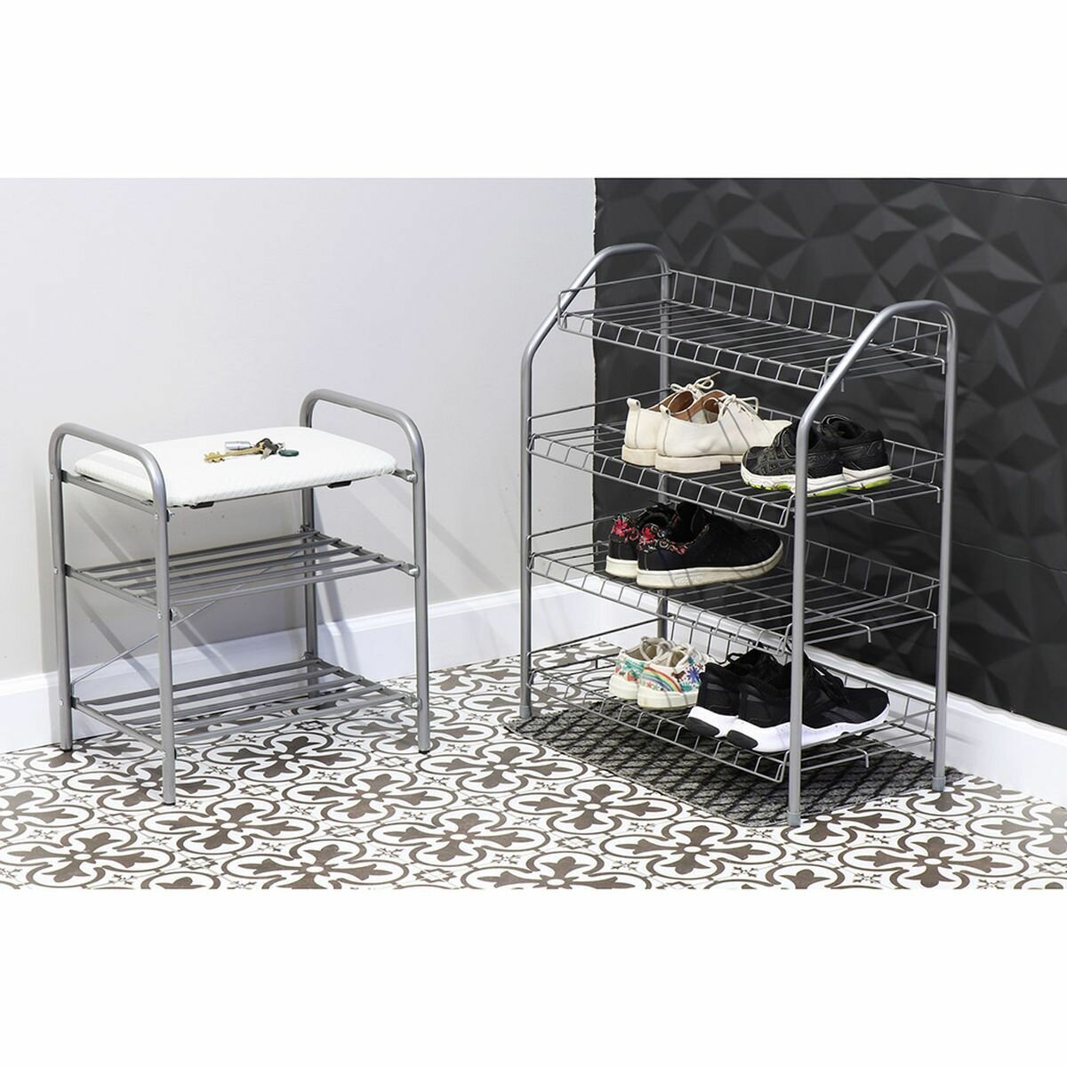 Полка для обуви, металл, 4 секции, 66х28х70 см, разборная, матовый серая, Nika, ЭТ1/МС