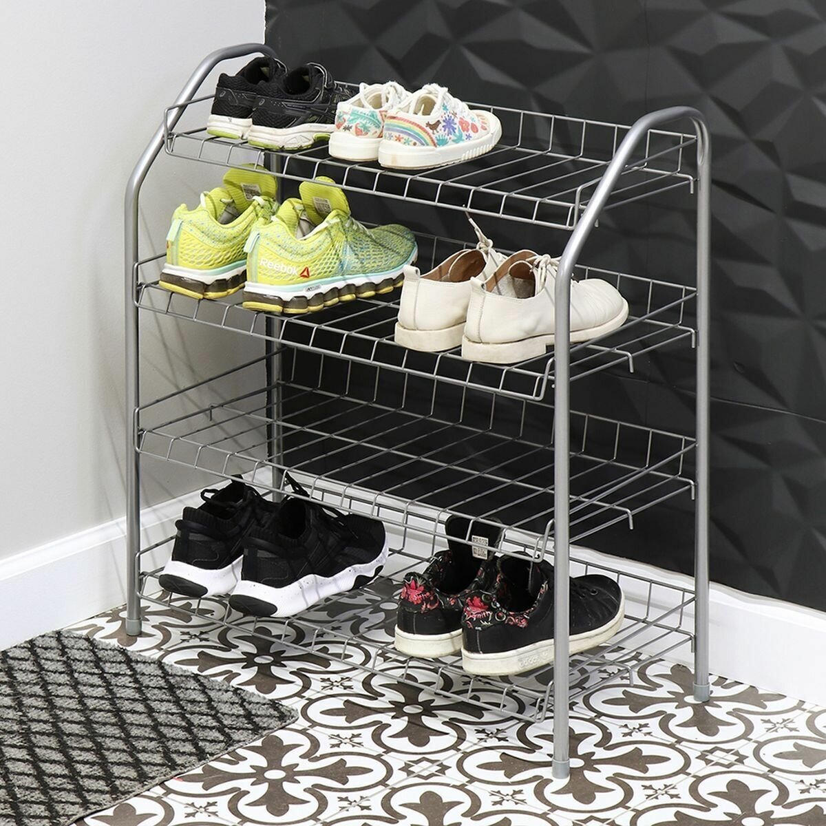 Этажерка металлическая для обуви, 4 полки Длина 460мм, Цвет Черный