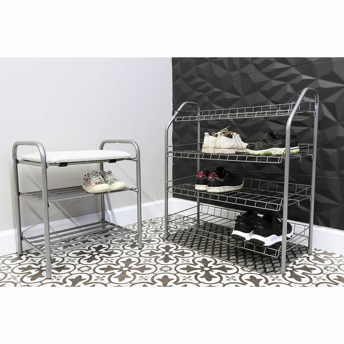 | Минусы: | Отсутствуют поддоны под каждой полкой: сухую обувь с нижней полки приходится переставлять выше, а вниз ставить мокрую, в которой пришел, чтобы с подошвы не капало на другую обувь. |