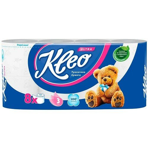 Kleo туалетная бумага 3х сл.Ultra 8рул. (белая)