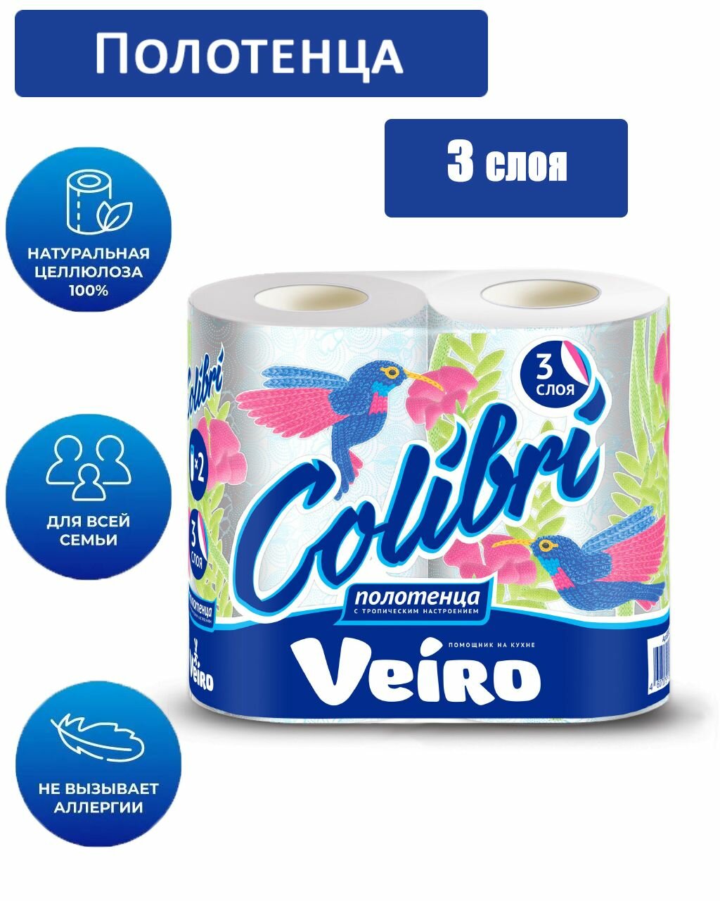 Veiro Полотенца бумажные кухонные Colibri 3 слоя 2 рулона белый
