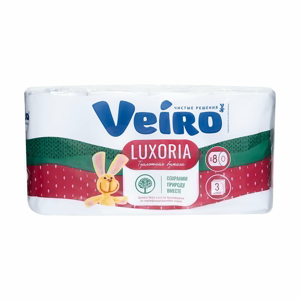 Veiro Туалетная бумага, "Люксория", 3 слоя, белая, 4 рулона