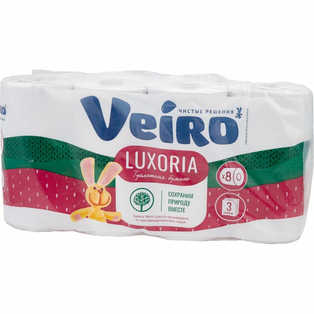 Туалетная бумага Veiro Luxoria белая трёхслойная 8 рул. 136 лист., белый, без запаха