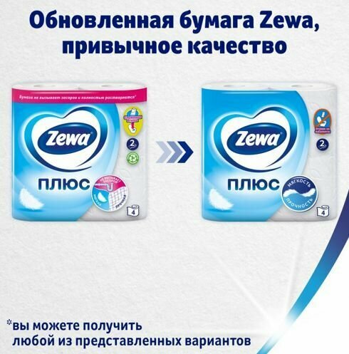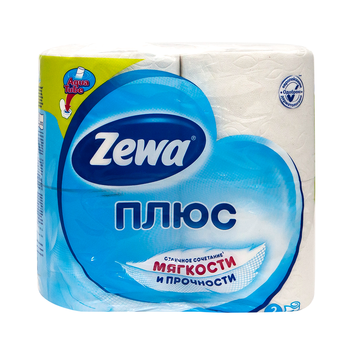 Туалетная бумага Zewa Плюс белая двухслойная 4 рул., белый, отсутствует