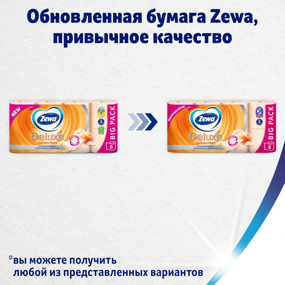 Туалетная бумага Zewa Deluxe Персик 3-слойная, 8 рулонов