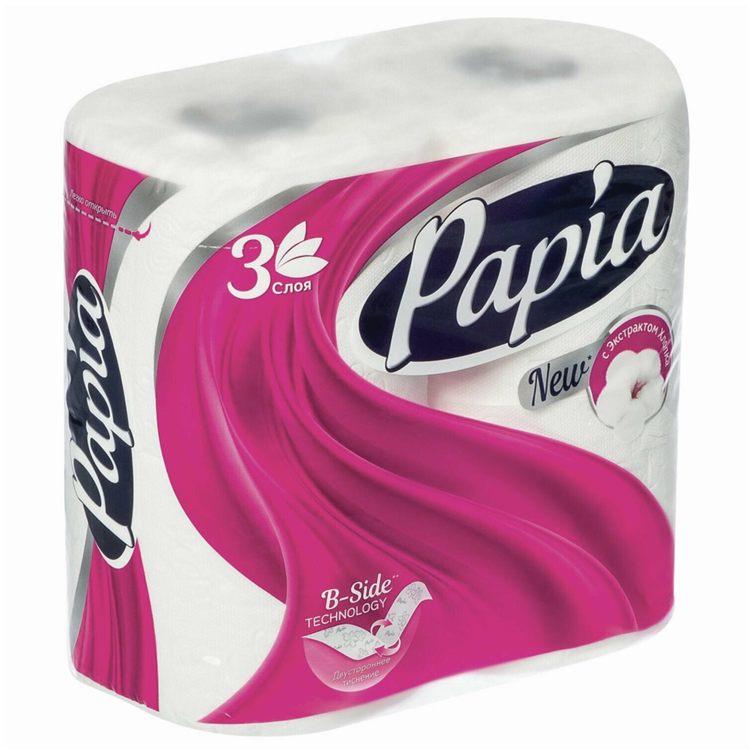Купить Бумага туалетная PAPIA 3-слоя белая, 4шт