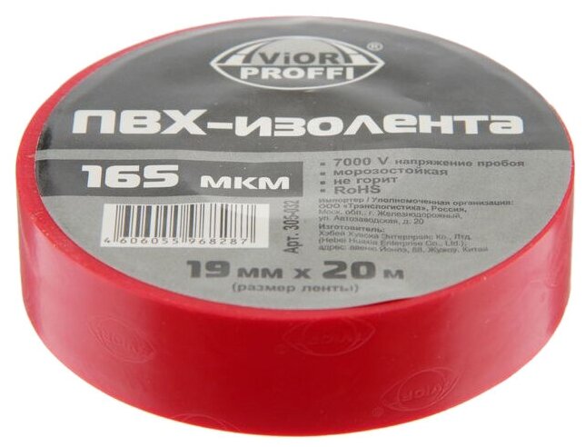 Изолента профессиональная ПВХ 19мм * 20м "AVIORA" (красная)