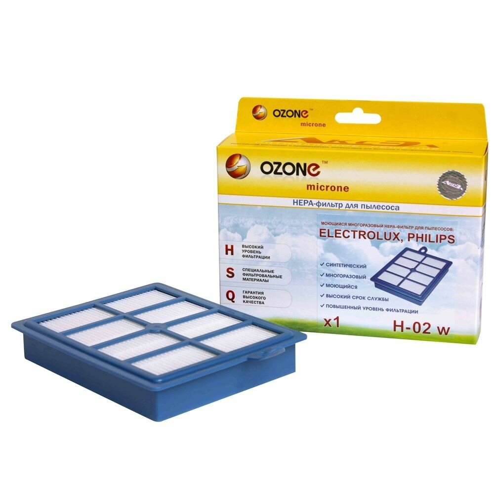 OZONE HEPA фильтр для пылесоса ELECTROLUX, PHILIPS, AEG, BORK, многоразовый моющийся. H-02W