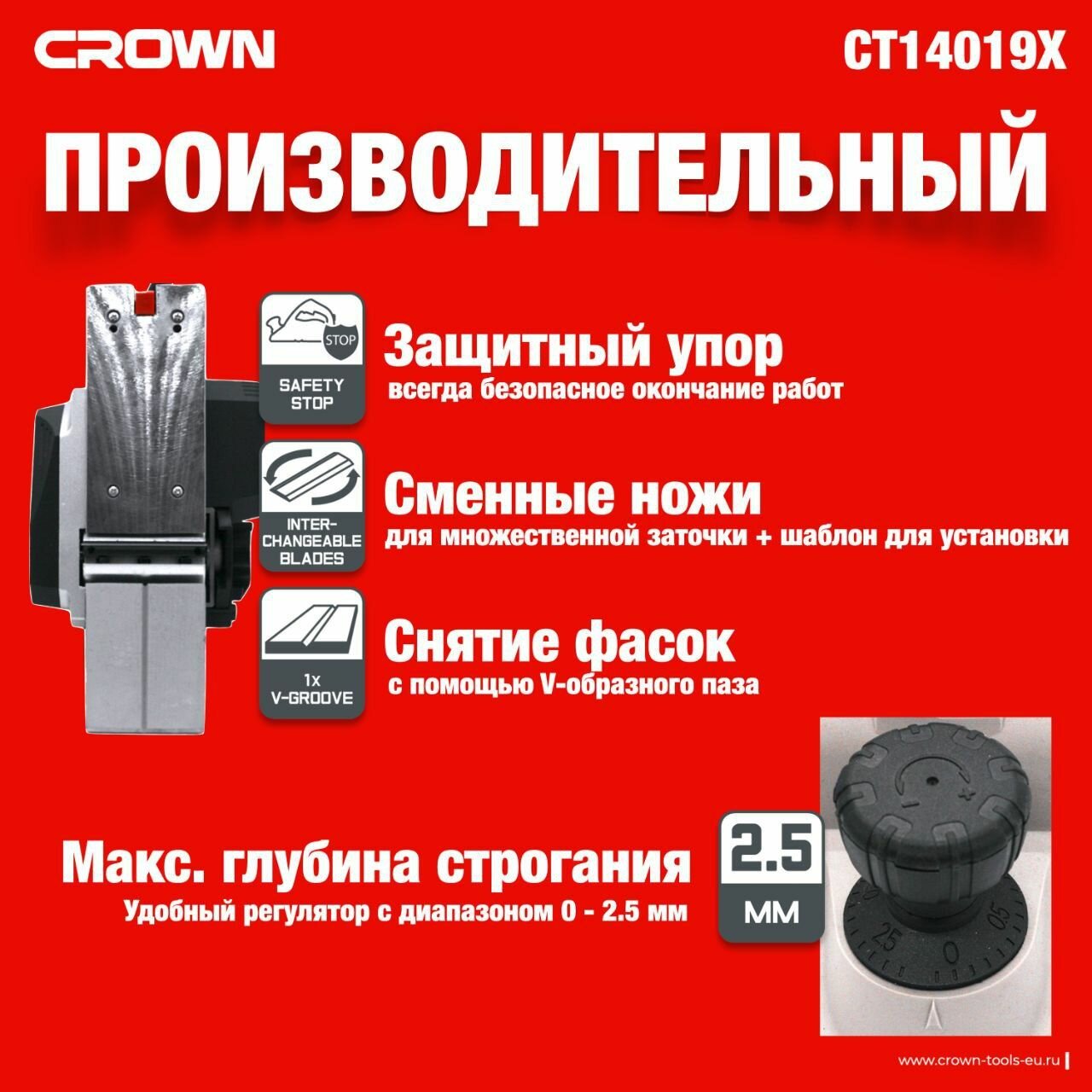 Рубанок электрический CROWN CT14019X (710Вт, 82мм, до 2,5мм, выборка четверти до 15мм, 2,8кг)