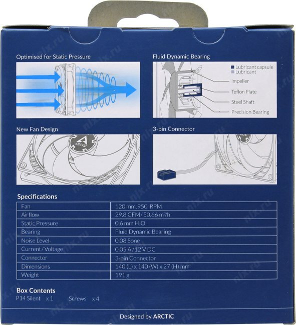 Вентилятор Arctic Cooling Вентилятор Arctic P14 Silent d140мм, 950об./мин. (питание от мат.платы) (ret)