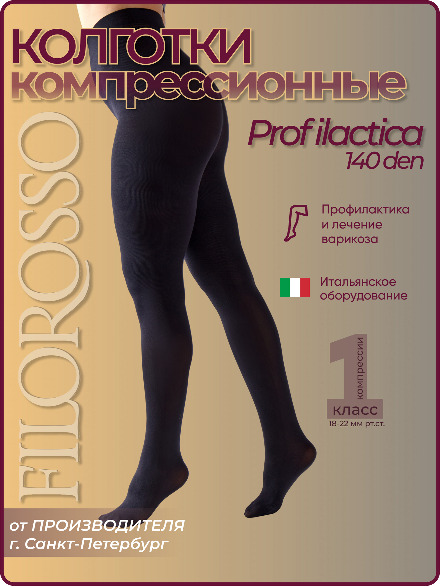 Колготки компрессионные FILOROSSO Profilactica 140 den, 1 класс, черный, размер 2