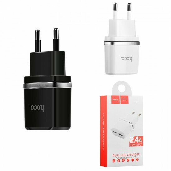Зарядное устройство Hoco USB charger C12 max2.4A 2xUSB, черный , 1шт.