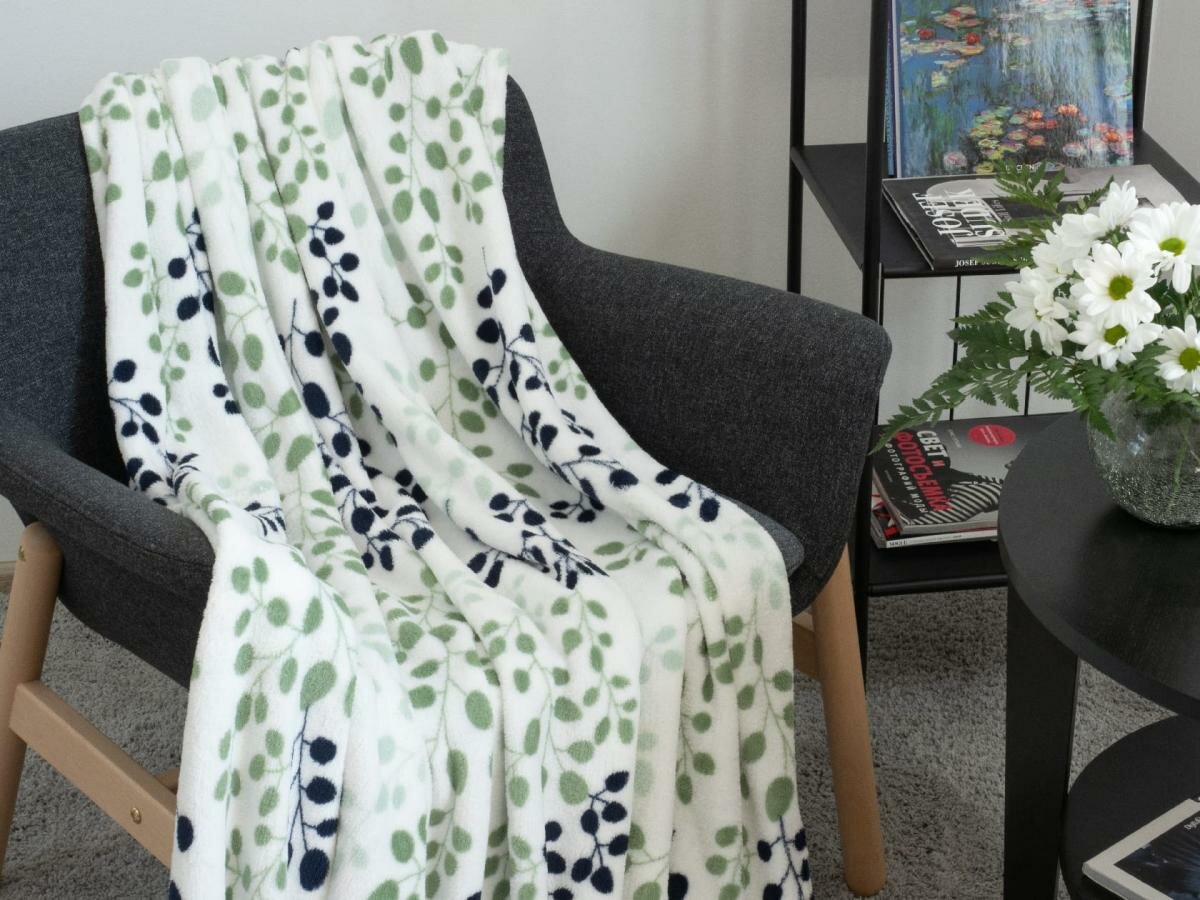 Велсофт ЗефирТекс Плед Willow, листья, белый (180х200 см,) интересное: