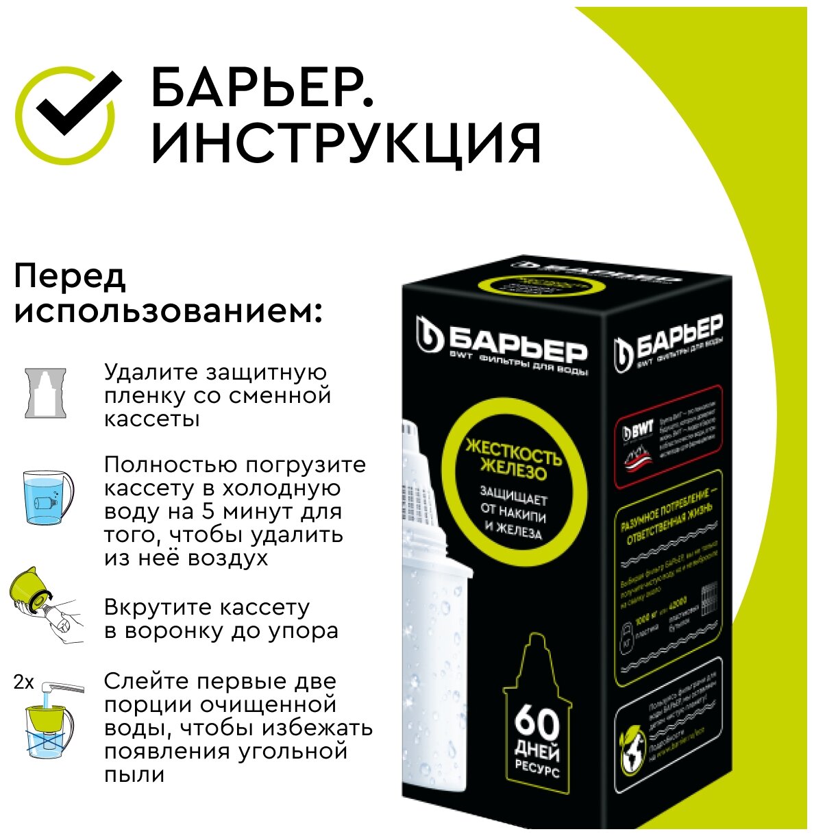 Кассета сменная Барьер Жесткость Железо к фильтру-кувшину для очистки воды, 1шт