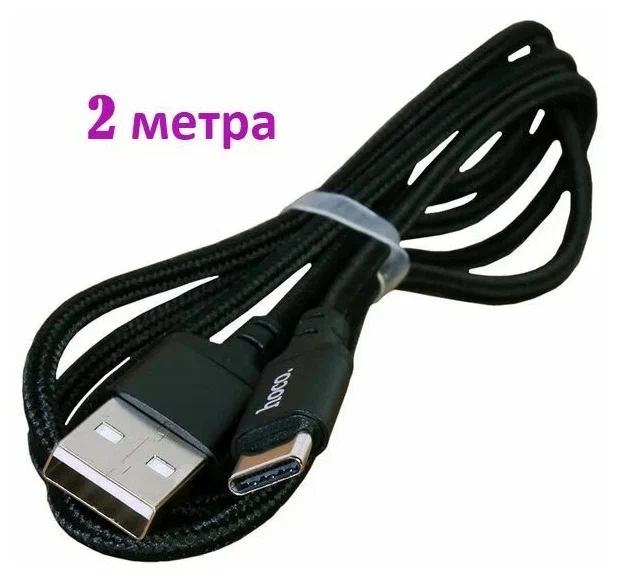 Кабель USB Type C, быстрая зарядка, 2 метра, нейлоновый, передача данных / провод тип с для смартфона, шнур для телефона / Hoco. X14